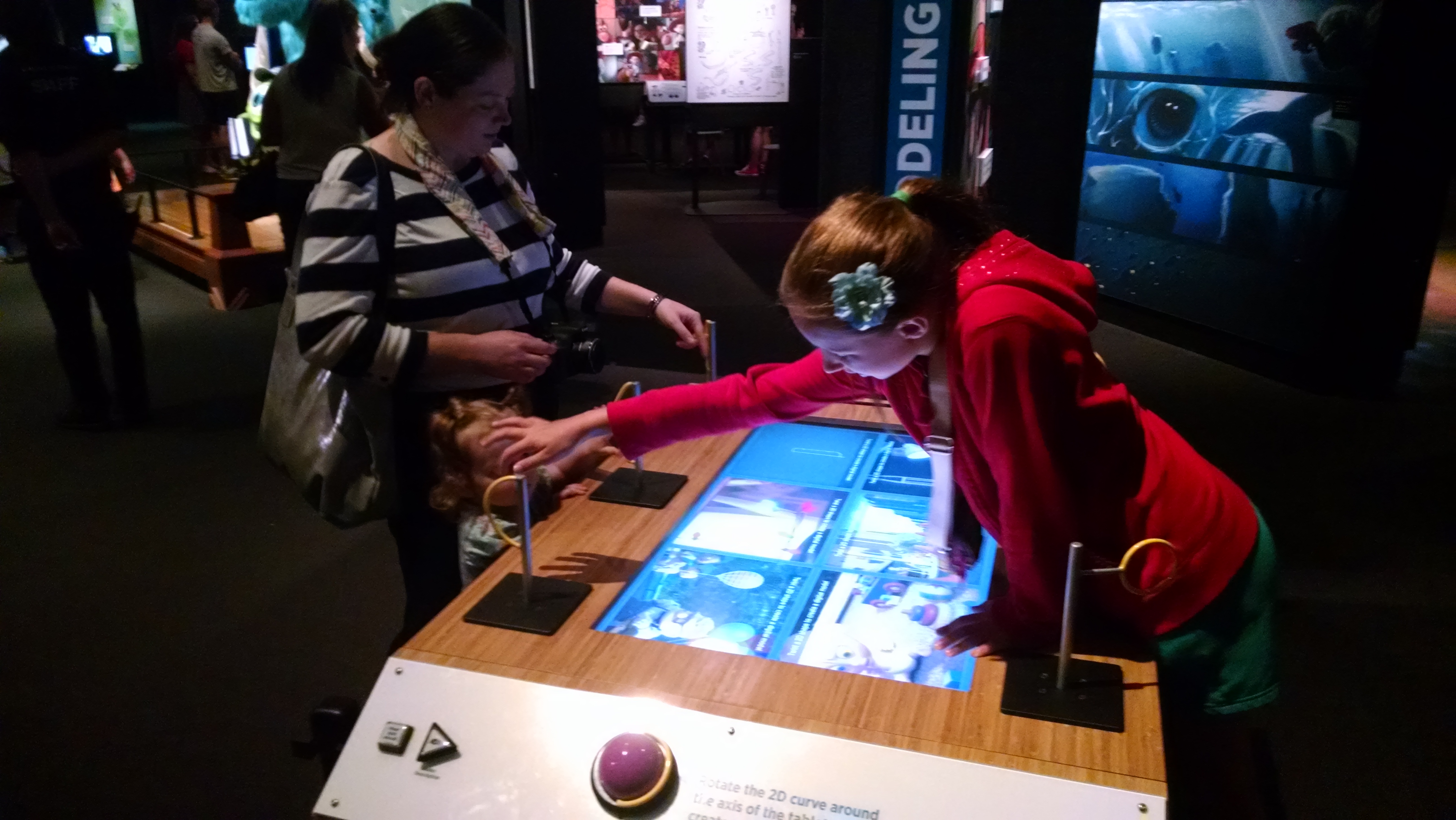 This animation station was one of the few where it helped to have paid attention earlier in the exhibit, to the ‘rigging’ section. It focused more on speed and range of motion, but was also influenced by the rules of how the character’s arm moved, based on the virtual bones and flexibility it had already been given.