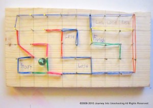 This was the low-tech version of mapping a surface onto a wireframe object. There was a very simple (frustratingly so, for adults) virtual interactive that allowed you to ‘paint’ a car hood with different projections, but I actually liked this better, for any number of reasons including the fact that different surfaces on the same shape create very different objects, and because it showed at least a little what kinds of deformations and folds you need to make in a surface texture when putting it on a 3D object.