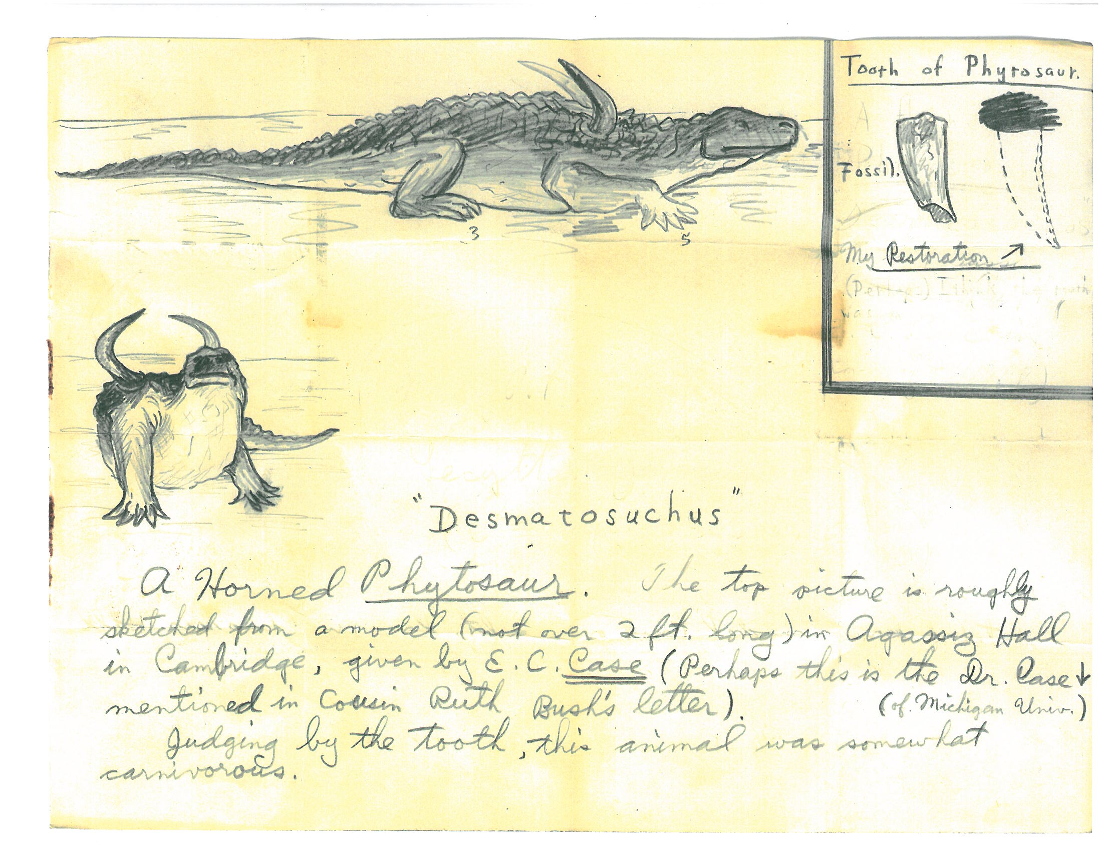 Sketches from one of the fossil's owners which was donated with the probable-phytosaur tooth.